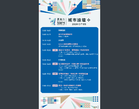 (一)活動名稱:「320+1嘉義市城市博覽會」城市論壇