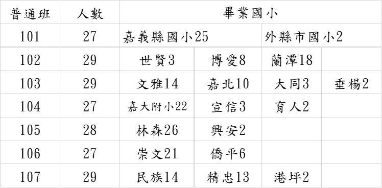 嘉義國中114學年度國一新生訓練暨暑期輔導暫編班名單